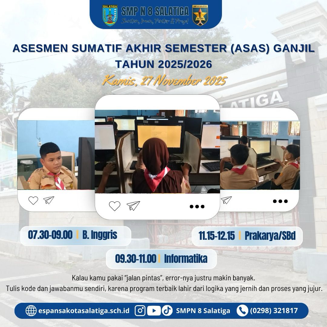 SOAL ASAS GASAL TP. 2025/2026 HARI KE-1 📢Soal ASAS Gasal📚 Selamat pagi, anak-anak ESPANSA SIPP! ... (Baca Selengkapnya)Selasa, 29 April 2025 - 13:49:49 WIB