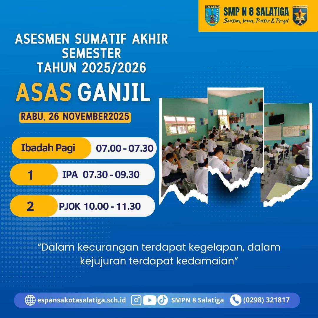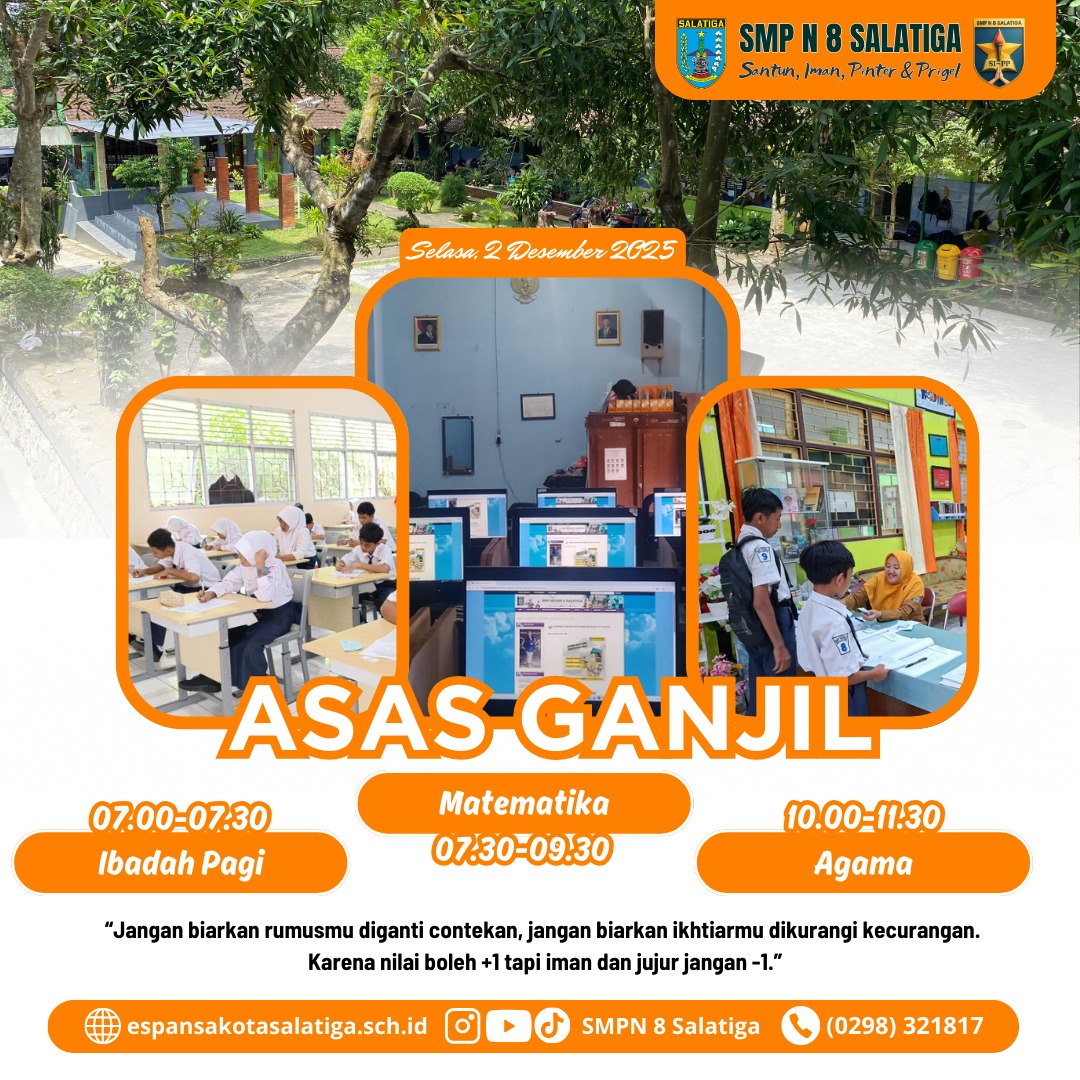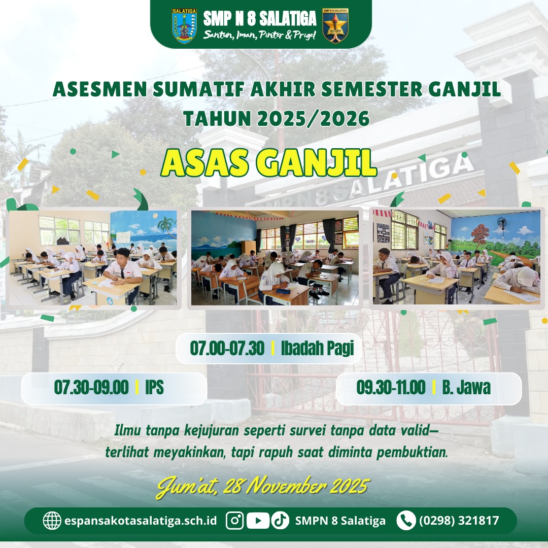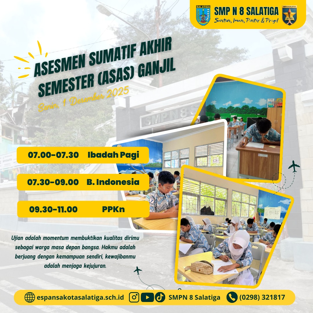 Assalamualaikum wr.wb Selamat Pagi anak-anakku SMP Negeri 8 Salatiga. Berikut tautan soal SOAL Penilaian Akhir Semester (PAS) Genap Senin, 31 Mei ... (Baca Selengkapnya)